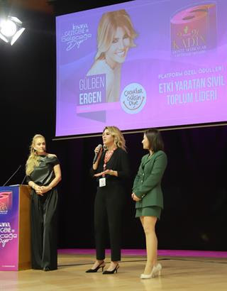 “İnsana, Gezegene ve Geleceğe Değer”temasıyla düzenlenen törende; toplumsal cinsiyet eşitliği, kapsayıcılık ve sürdürülebilirlik alanlarında fark yaratan projeler ödüllendirildi. Törende sahneye çıkan Gülben Ergen, kadınların güçlenmesine yönelik yürüttüğü çalışmalar ve sosyal sorumluluk projeleriyle bu yılın özel ödülünün sahibi oldu.