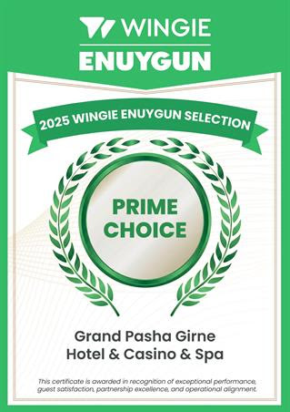 GİRNE – Kuzey Kıbrıs Türk Cumhuriyeti turizminin köklü temsilcilerinden Grand Pasha Girne Hotel & Casino & Spa, uluslararası seyahat platformu Wingie tarafından düzenlenen değerlendirmeler sonucunda prestijli “2025 Wingie Enuygun Selection – Prime Choice” ödülüne layık görüldü.