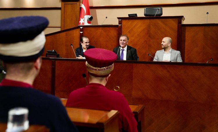İstanbul Büyükşehir Belediyesi (İBB) Başkanvekili Nuri Aslan, A Milli Futbol Takımı’nın 2026 Dünya Kupası Play-Off Yarı Finali’nde Romanya’yı 1-0 mağlup ettiği maçta performanslarıyla öne çıkan İBB Mehteran Bölüğü ile Saraçhane’de bir araya geldi. Meclis Salonu’nda gerçekleşen buluşmada Aslan, mehteran ekibini tebrik ederek, “Sizler, gelenek ve göreneklerimize sahip çıkmanın en güzel örneğisiniz” dedi.